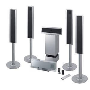 - 4 floorstanding speakers, wireless audio transmission using Sony's DIAT system, 1 center speaker, and a 170-watt powered subwoofer